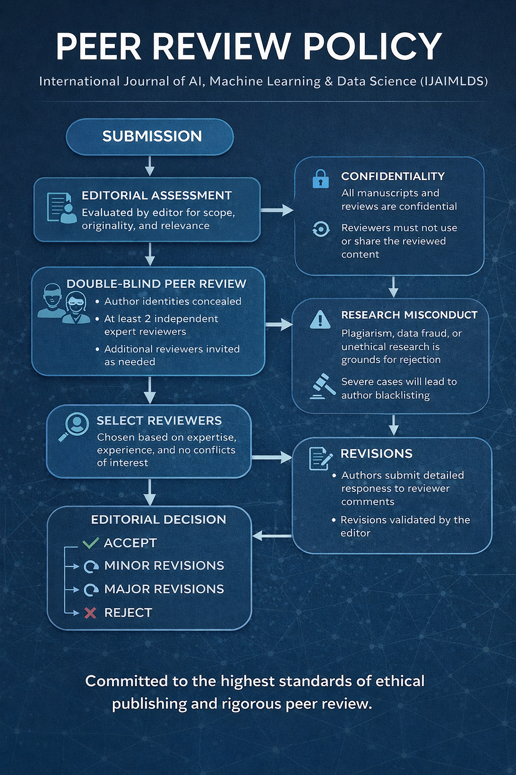 The International Journal of AI, Machine Learning & Data Science (IJAIMLDS) follows a double-blind peer review process to ensure fairness, objectivity, transparency, and high academic standards.